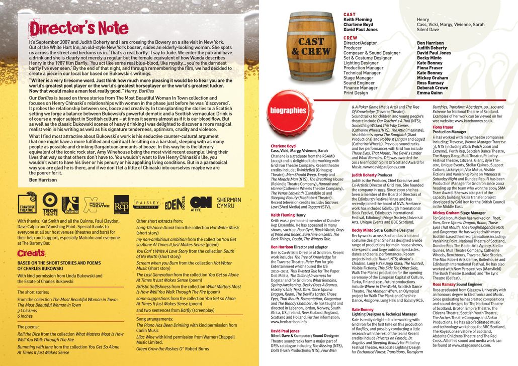Adapted from the stories and poems of Charles Bukowski