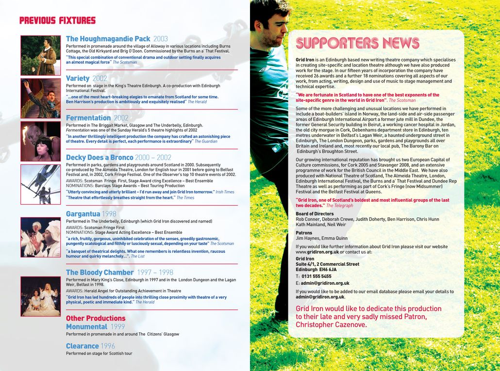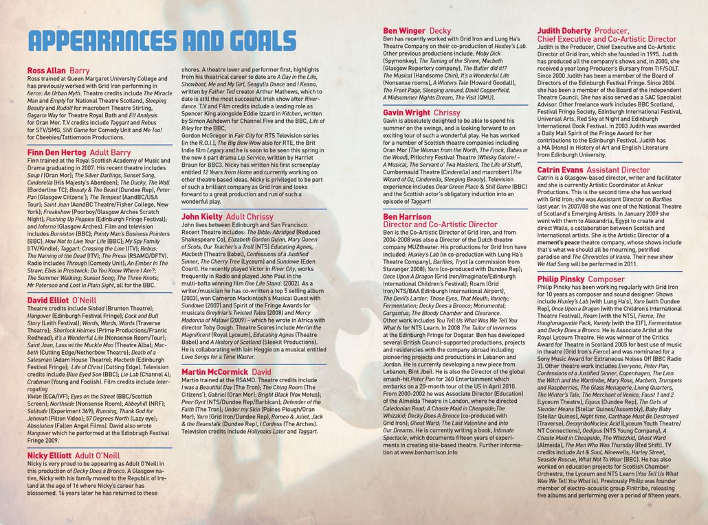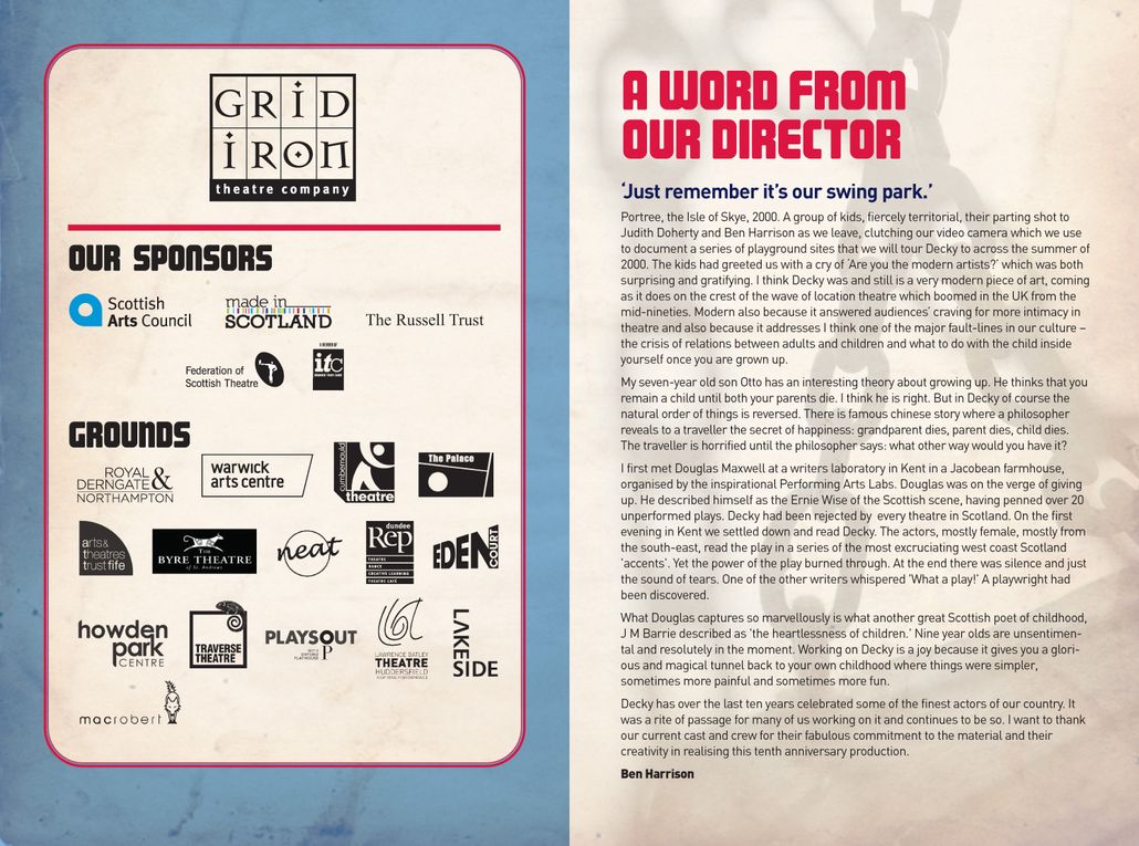 In celebration of the tenth anniversary of the first production of Decky Does a Bronco, we toured this new production for 3 months all over Scotland and England, including a return to the Edinburgh Festival Fringe.